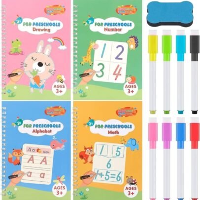 Magical Reusable Writing Practice/Copybook including 8 Pen,4 Books, 1 Scrubbing Duster