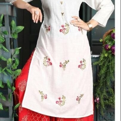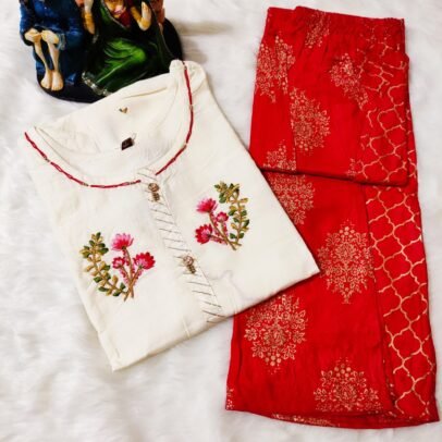 Mirror Flower Printed Kurti with Plazzo