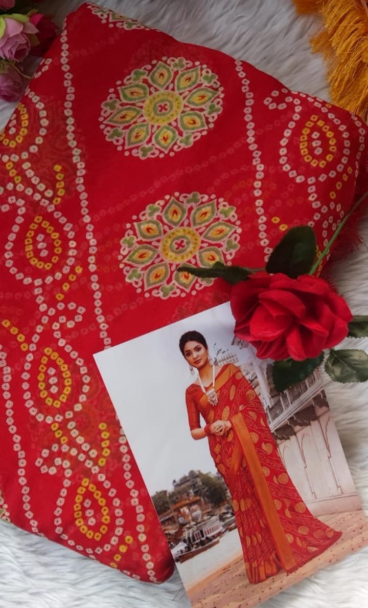 Bandhani Printed Saree (Saree with Unstitched Blouse)