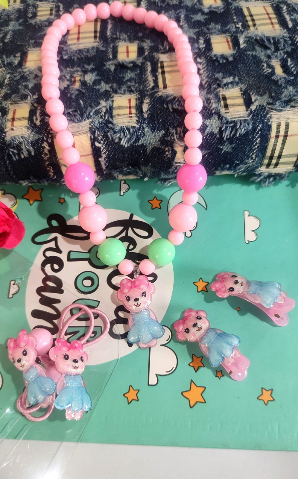 - Gift Box Includes Beaded Necklace, Hair Clip & 2 Hair