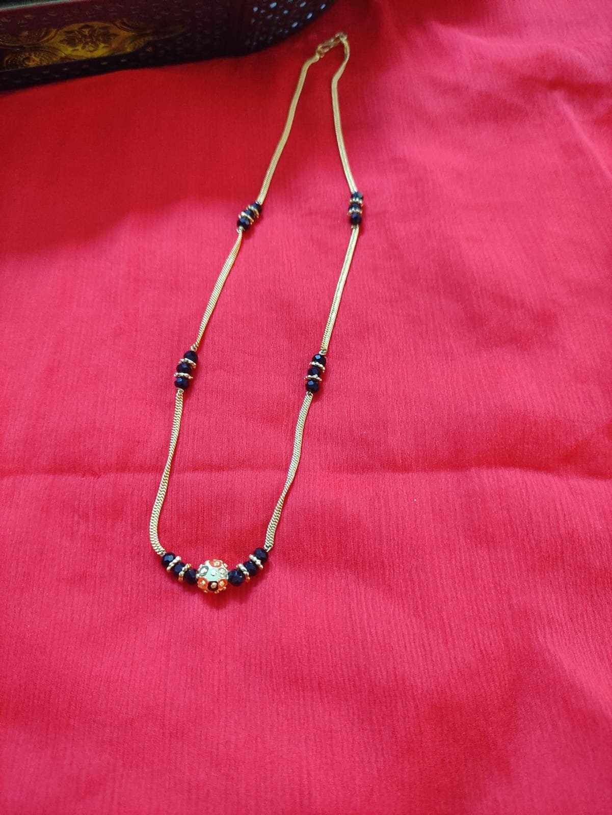 Be the first to review “Gold Plated Pearl With Black Beads Chain Mangalsutra”