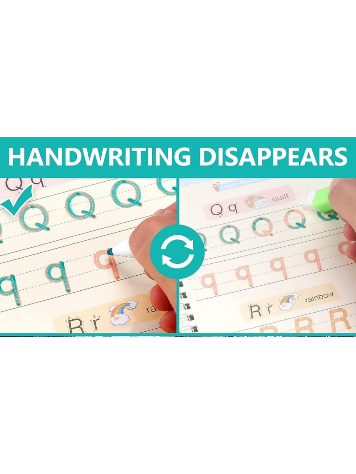 Magical Reusable Writing Practice/Copybook including 8 Pen,4 Books, 1 Scrubbing Duster