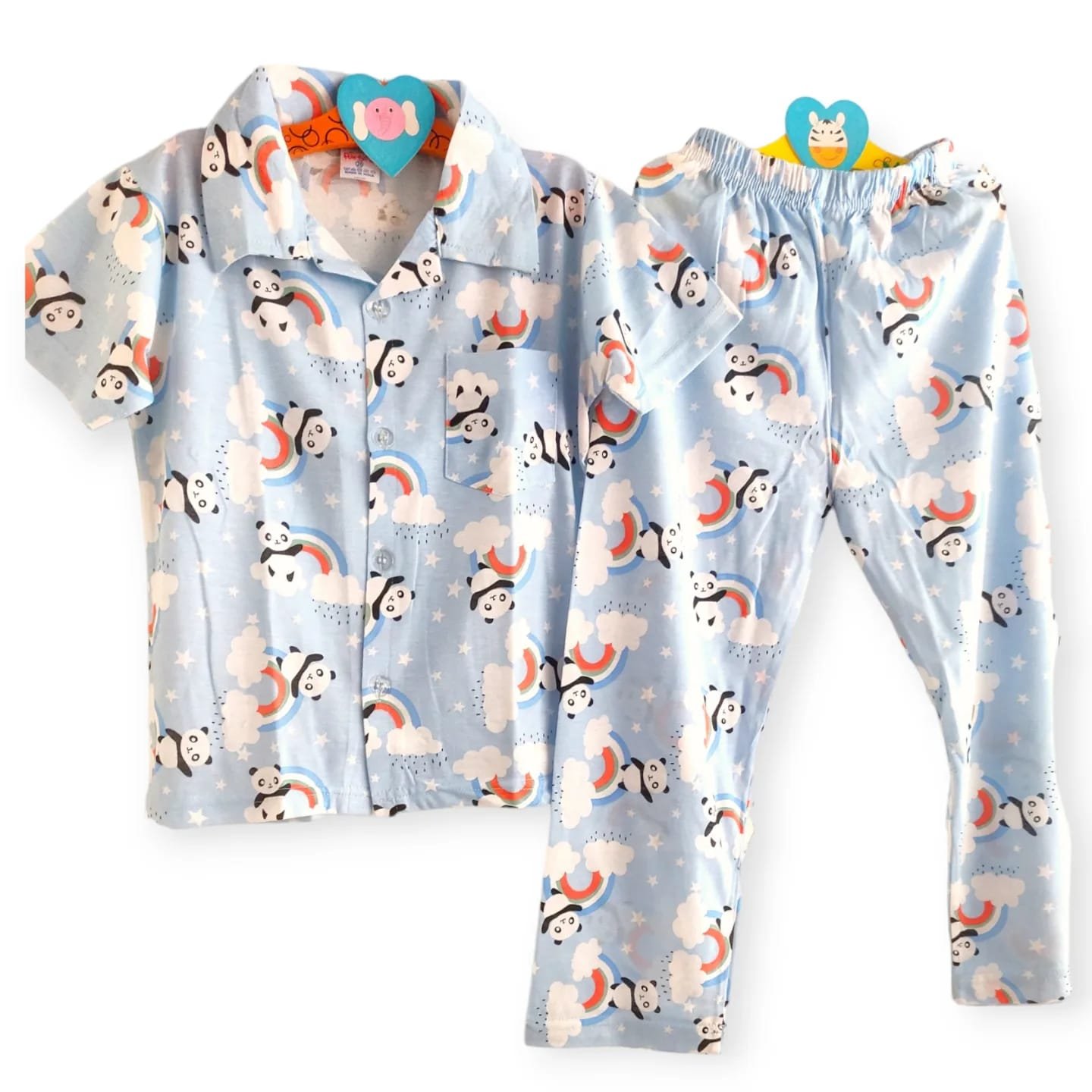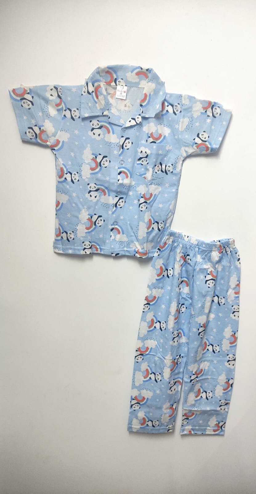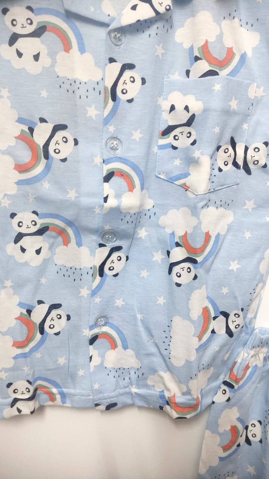 Shravya Passion Panda Print Half Sleeve Night Suit (Buttoned Shirt & Pyjama)