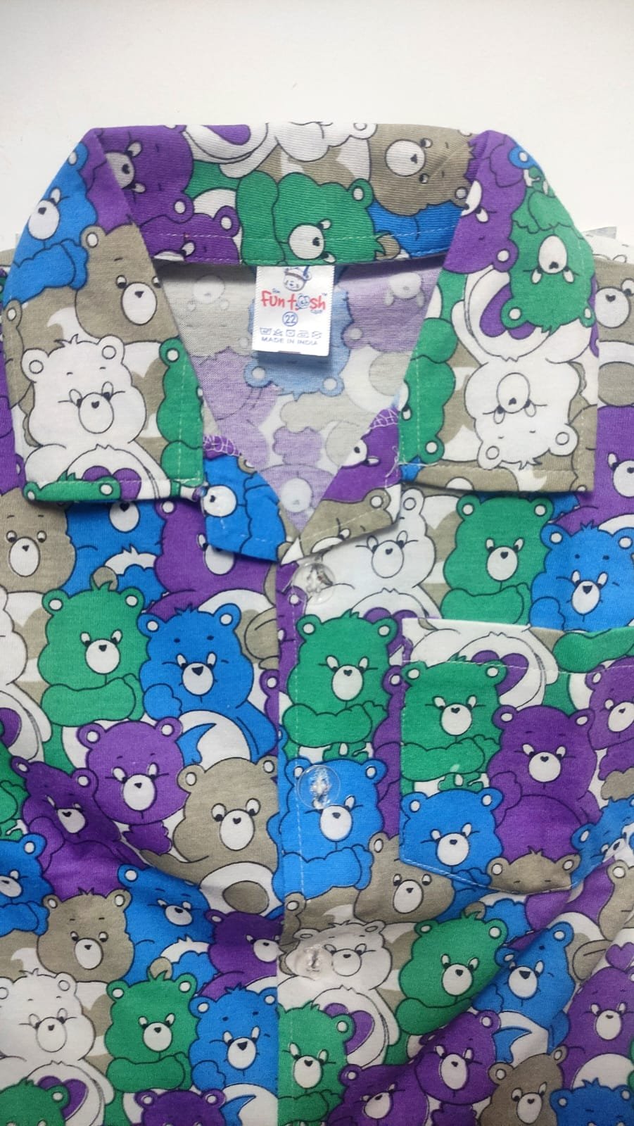 Shravya Passion Teddy Print Half Sleeve Night Suit (Buttoned Shirt & Pyjama)