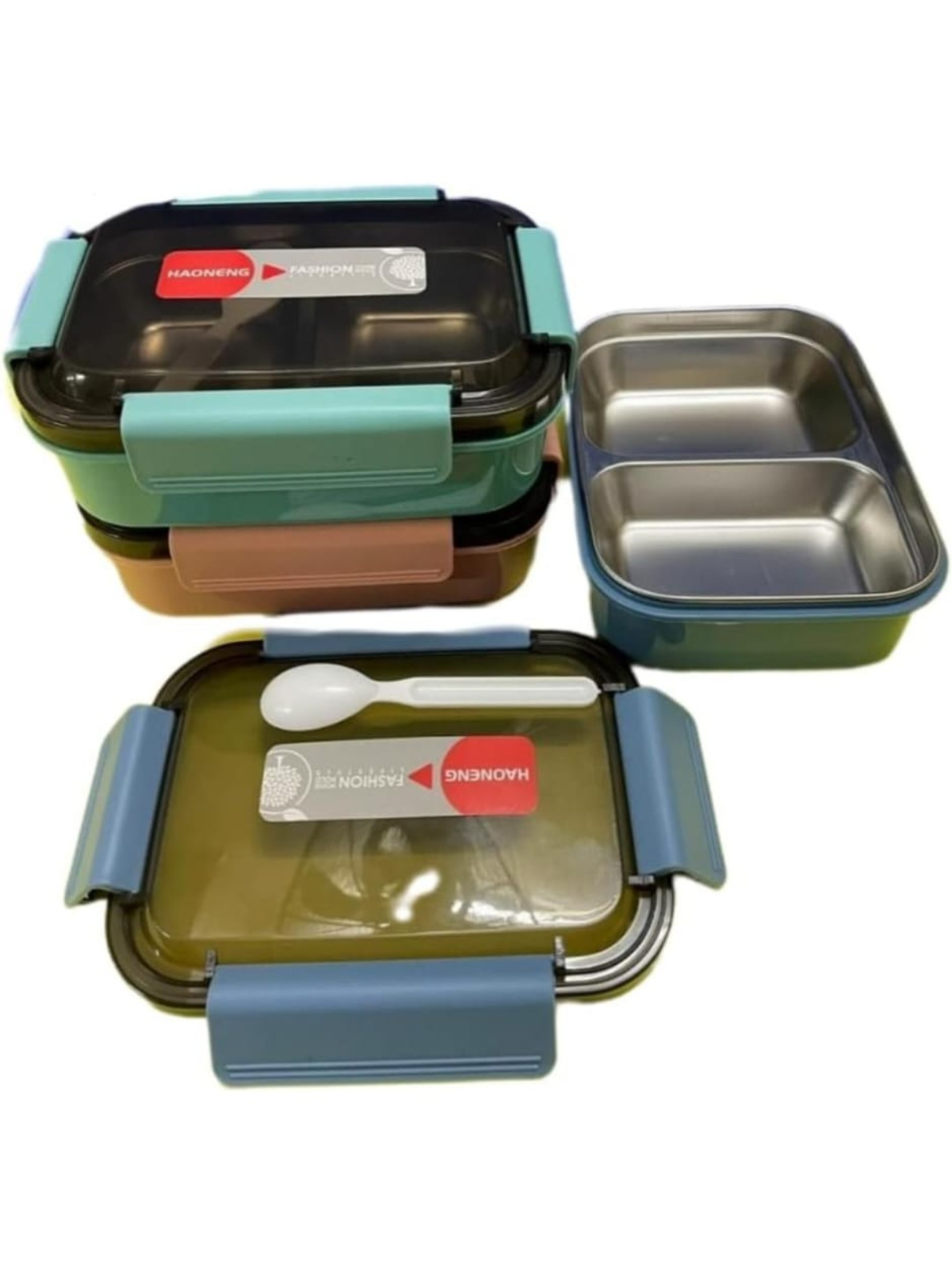 Be the first to review “Stainless Steel 2 Compartment Lunch Box For Boys/Girls/School/Office-Multicolour”