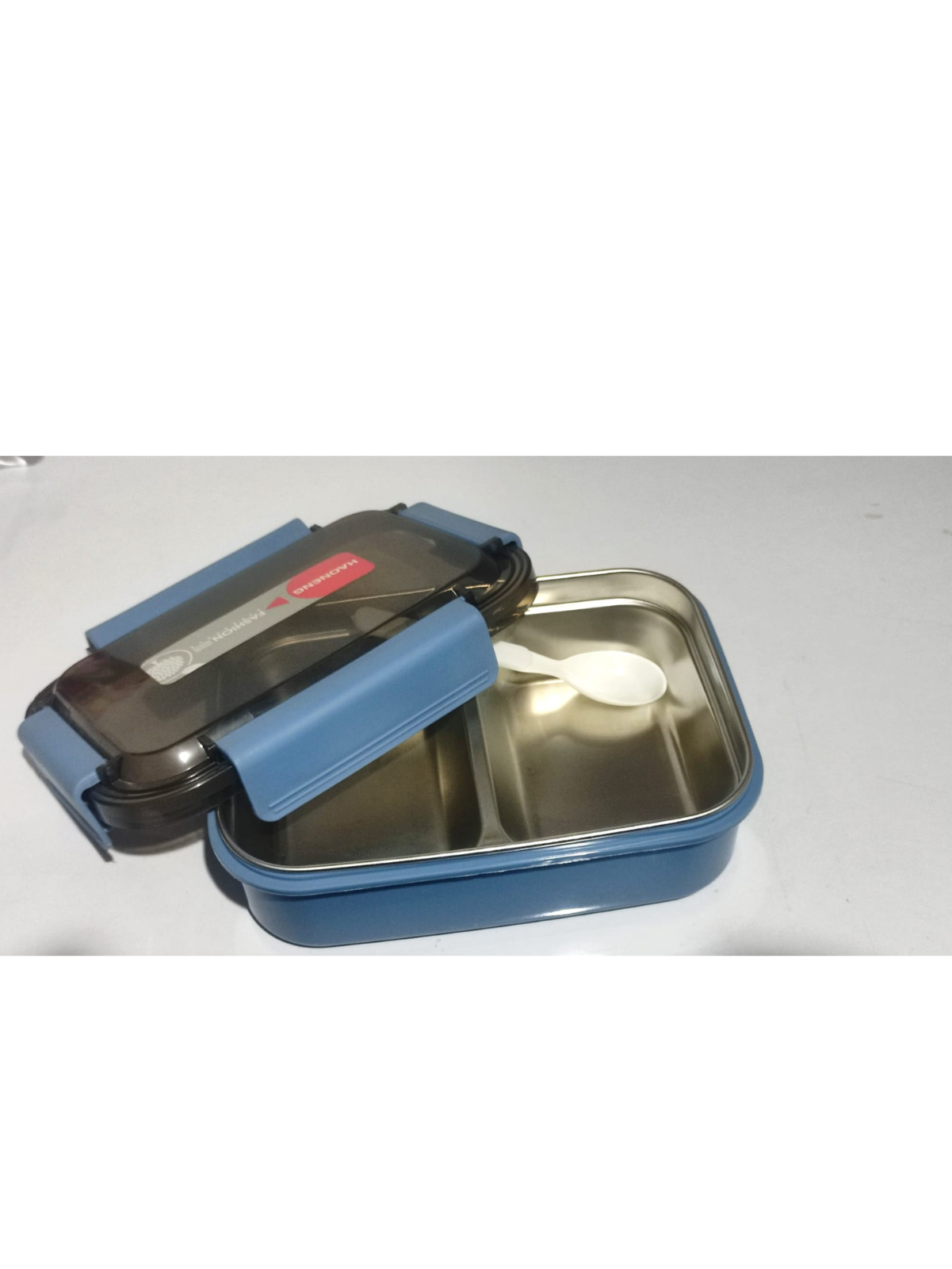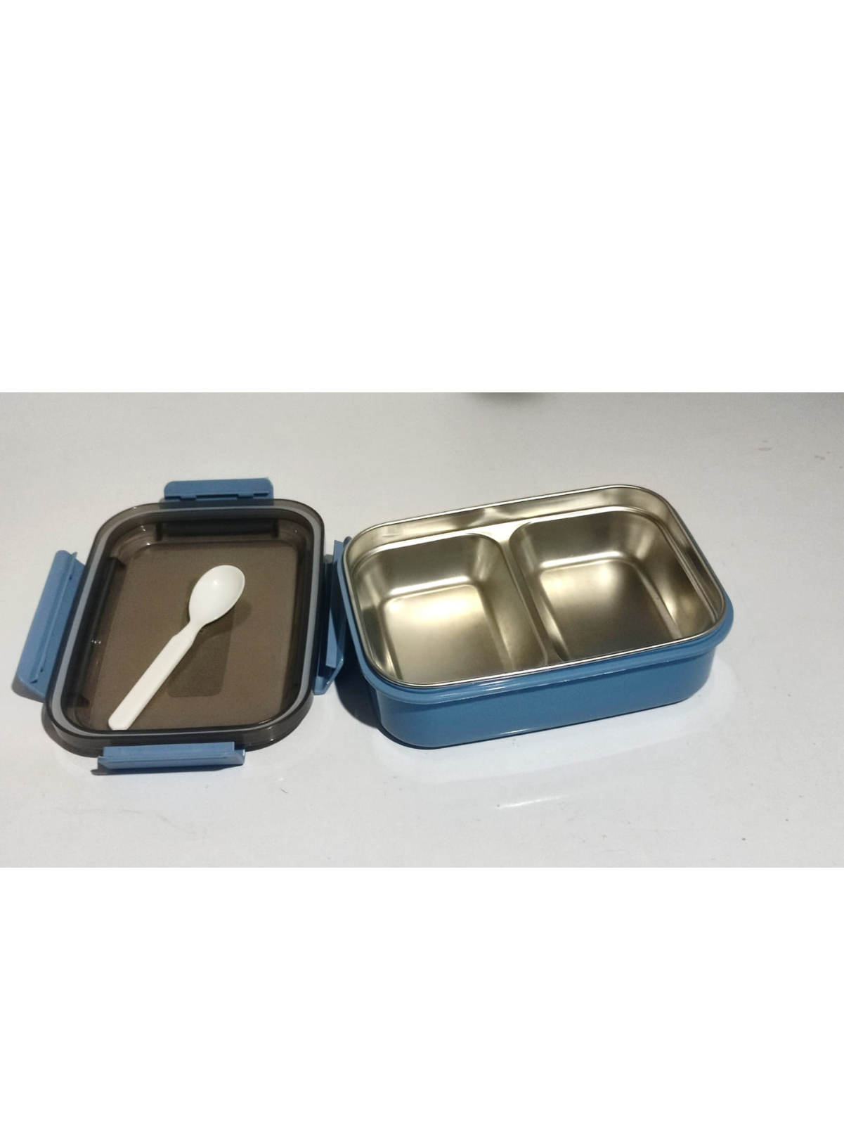 Stainless Steel 2 Compartment Lunch Box For Boys/Girls/School/Office-Multicolour